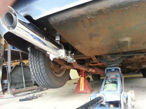 Cherry Bomb also makes "turbo" mufflers which are quieter than the glass pack style. I got mine from Summit Racing for $20 on e-bay with free shipping I think. Sounds good in the driveway, but I haven't gotten it all together for a drive yet…so we'll see.
