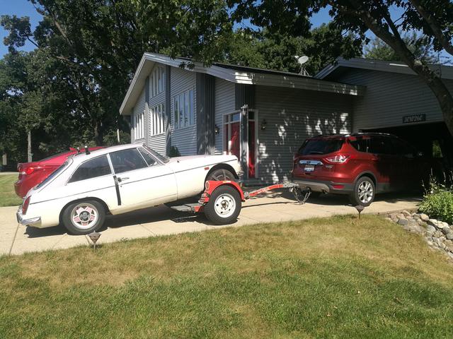 In reply to # 3787234 by Ottawa1973MGB So I will be getting my new hitch for my BMW X3 tomorrow. Next question is what size of trailer will I need to get my rolling shell( wheels/axles are on the car now), engine, tranny, seats/dash, windshield and other odds and ends that normally come with a MGB? Any suggestions as to the best/easiest method of getting the shell and engine on to the trailer?