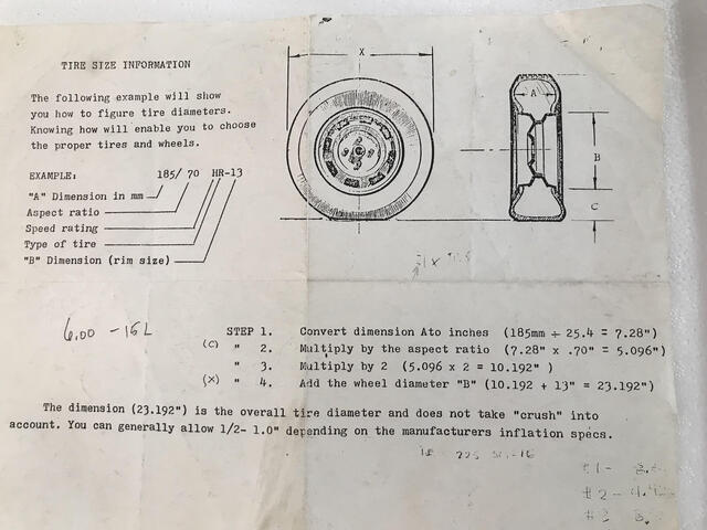 Came across this tire size information chart stuffed into one of my books. Not sure how accurate it is. Not sure who to give the credit to, but it may help someone. Ron