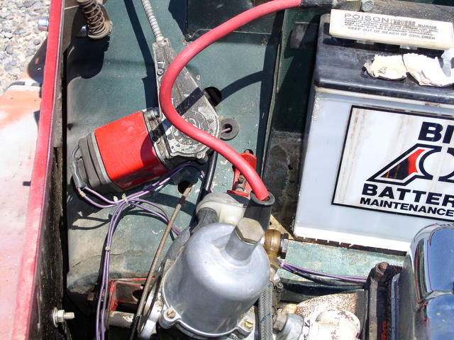 Now that I have removed my grille shell for repair, I'm back to the non-functional wiper motor. It was in a box of parts that came with the car. I looked at the pictures LaVerne posted which were very helpful. I'm posting a few pictures of my motor. The red wire I am assuming is the 'hot' wire. I don't have a second wire that would be the ground. The picture of the green car LaVerne posted I could see the second wire but it wasn't clear to me what it attached to. I see a hole so I thought I might see a broken wire or a screw if I removed the cover from the motor. I'm still not seeing it.
